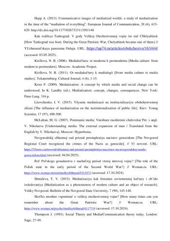 Объектом настоящего исследования являются СМИ Новгородской и Челябинской областей. Исторический медиаконтент, транслируемый СМИ из названных регионов, выступает в качестве предмета исследования. В статье приводится обзор теоретических подходов к изучению понятия «медиатизация», а также сравниваются дефиниции данного явления. На примере нескольких региональных медиаплощадок рассматривается вопрос интерпретации распространяемых в цифровом пространстве исторических фактов. В результате анализа становится очевидным, что в социальных медиа создается потенциально дезориентирующая среда, в которой происходит смешение фактов, мнений и доказательств. Поэтому нередко становится затруднительно разделить точки зрения на потенциально истинные и потенциально неверные. Автор приходит к выводу о полемичном характере открытых обсуждений, которые нередко имеют довольно провокационный заголовок. Поскольку освещение информации об исторических фактах в медиапространстве имеет склонность к корректировкам и манипуляциям, становится необходимым рассмотреть характерные черты исторического дискурса (на основе публикаций новгородских и челябинских медиа). Отличительной чертой является краеведческая направленность публикаций региональных медиа, что оправдано ориентацией на местную аудиторию. При всем разнообразии исторических тематик региональные медиа не имеют большинства аспектов федеральной повестки. Несмотря на это, они напрямую участвуют в формировании национальной и региональной идентичностей посредством сохранения исторической памяти в массовом сознании. Автор приходит к выводу, что, согласно приведенной типологии, в региональных современных медиа наиболее распространен третий тип публикаций об истории, а именно, «реферат по истории».