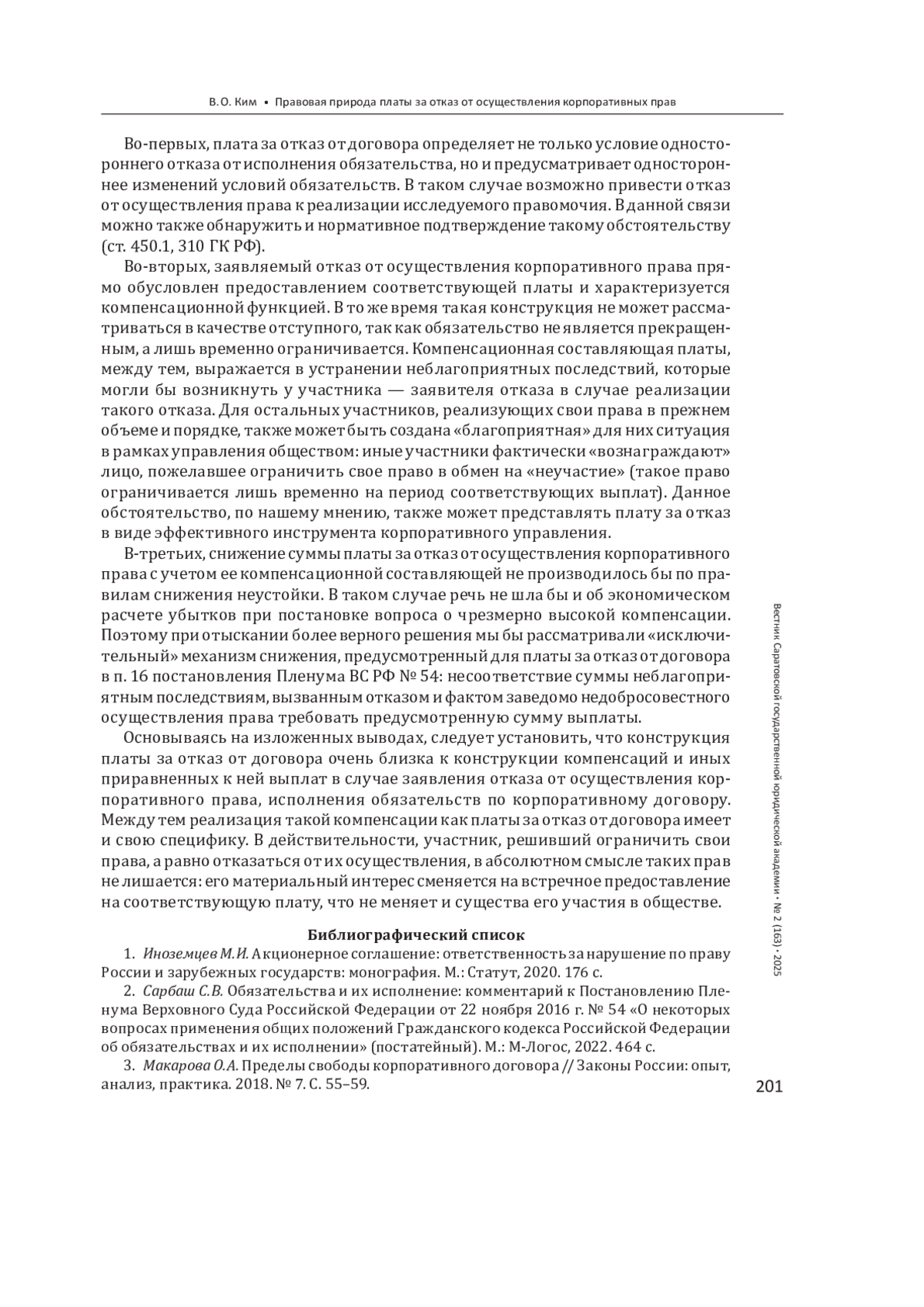 3. Макарова О. А. Пределы свободы корпоративного договора // Законы России: опыт, анализ, практика. 2018. № 7. С. 55-59. EDN: YVYIJF