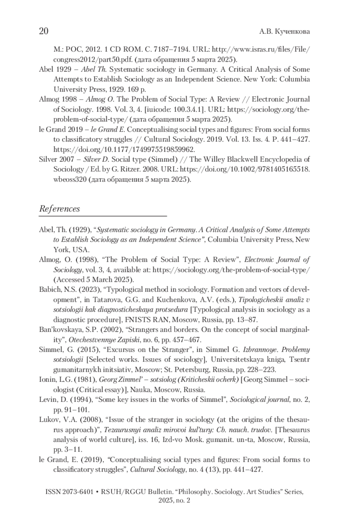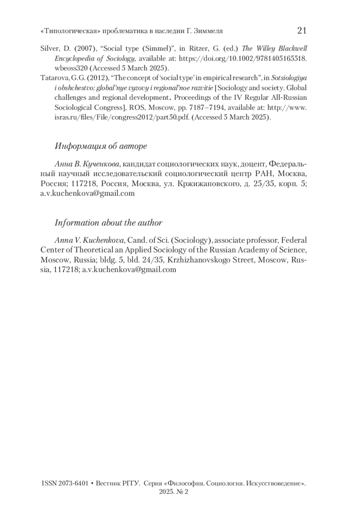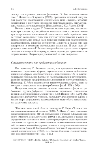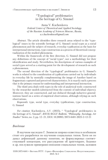 КУЧЕНКОВА А. В. «ТИПОЛОГИЧЕСКАЯ» ПРОБЛЕМАТИКА В НАСЛЕДИИ Г. ЗИММЕЛЯ // ВЕСТНИК РГГУ. СЕРИЯ: ФИЛОСОФИЯ. СОЦИОЛОГИЯ. ИСКУССТВОВЕДЕНИЕ. 2025. № 2