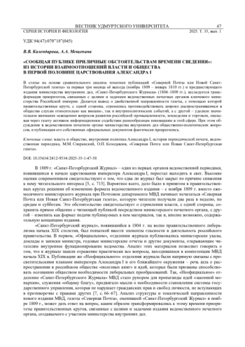 7. Календарова В.В. Министерские периодические издания в контексте реформаторских планов правительственных кругов в первой четверти XIX века // М.М. Сперанский и опыт социально-политического реформаторства в отечественной истории: сб. науч. ст. по итогам Всероссийской научно-практической конференции 20-21сентября 2022 г., г. Владимир / редкол.: Е.М. Петровичева [и др.]. Владимир: Транзит-ИКС, 2023. С. 61-70. EDN: EDDEUU