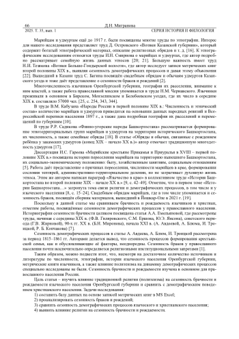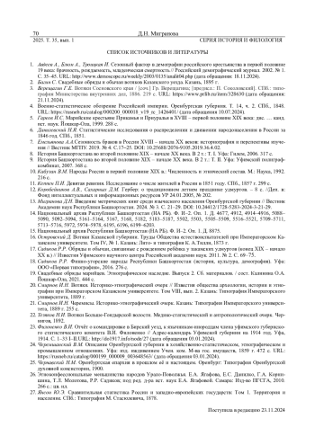 МИГРАНОВА Д. Н. СЕЗОННАЯ ДИНАМИКА БРАЧНОСТИ И РОЖДАЕМОСТИ ЯЗЫЧЕСКОГО НАСЕЛЕНИЯ ОРЕНБУРГСКОЙ ГУБЕРНИИ В ПЕРВОЙ ПОЛОВИНЕ XIX ВЕКА ПО МАТЕРИАЛАМ МЕТРИЧЕСКИХ КНИГ // ВЕСТНИК УДМУРТСКОГО УНИВЕРСИТЕТА. СЕРИЯ: ИСТОРИЯ И ФИЛОЛОГИЯ. 2025. Т. 35 № 1