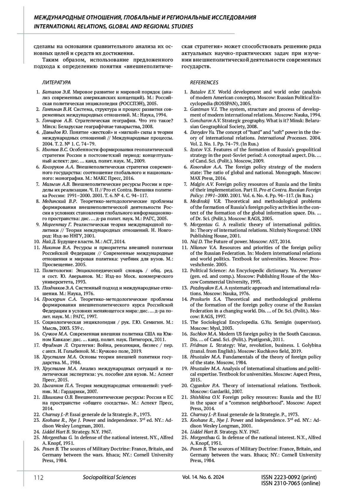 5. Изотов В.С. Особенности формирования геополитической стратегии России в постсоветский период: концептуальный аспект: дис. … канд. полит. наук. М., 2009. EDN: NQJYST