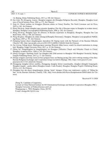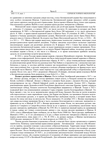 ЧЖЭН Е. ИСТОРИЯ И НЫНЕШНЯЯ СИТУАЦИЯ РАСПРОСТРАНЕНИЯ РУССКОГО ПРАВОСЛАВИЯ В ШАНХАЕ // ВЕСТНИК УДМУРТСКОГО УНИВЕРСИТЕТА. СЕРИЯ: ИСТОРИЯ И ФИЛОЛОГИЯ. 2025. Т. 35 № 1