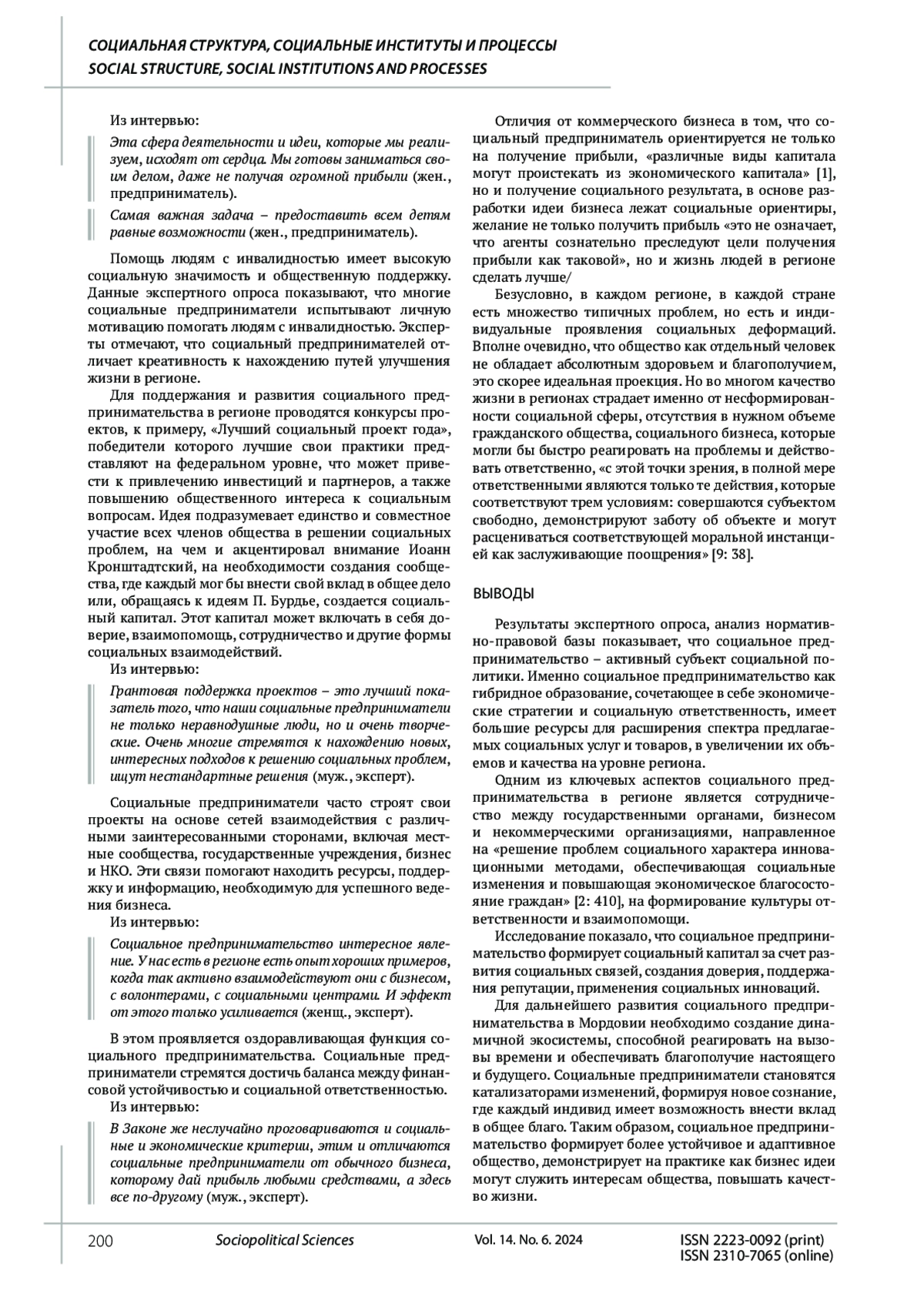 6. Смирнов В.А. Региональные системы социального предпринимательства в России: типология, факторы развития, ключевые противоречия // Журнал исследований социальной политики. 2021. № 1. EDN: PRGWSK