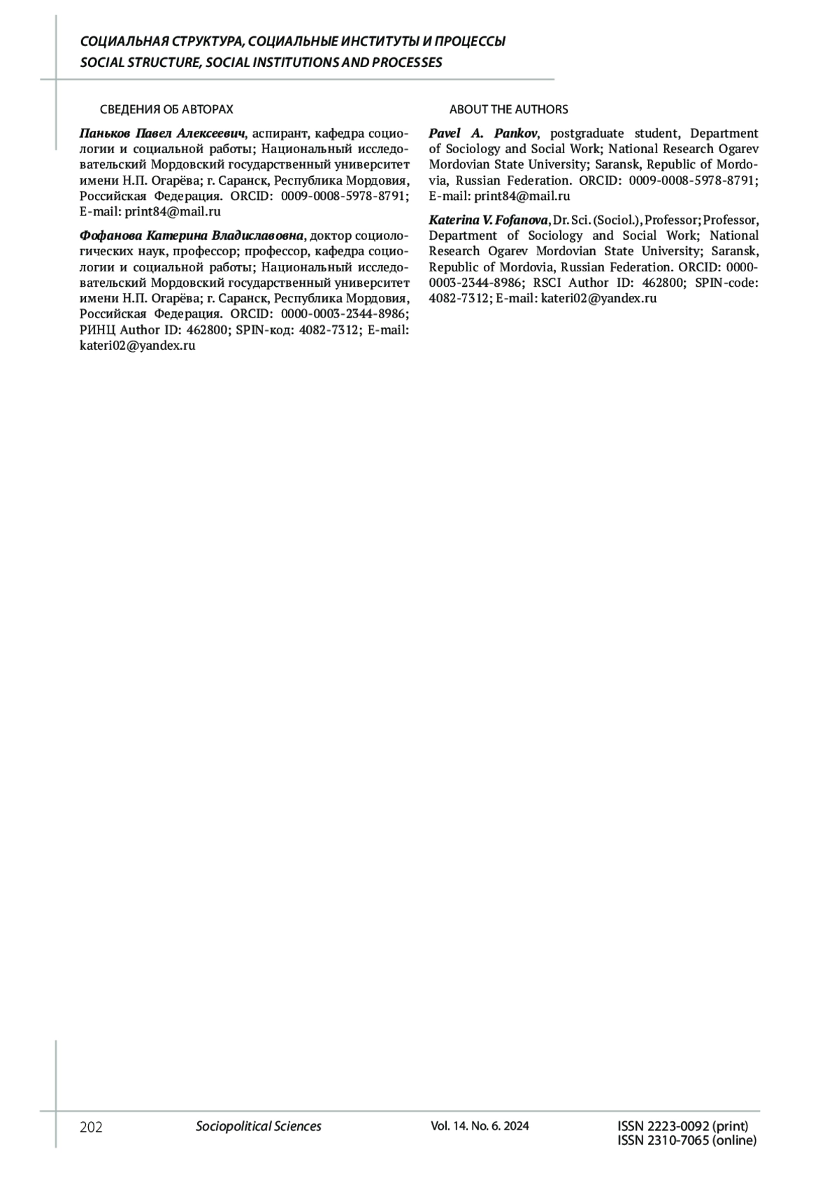 Цель исследования. Статья посвящена вопросу формирования жизненных стратегий молодежи столиц и провинций. Жизненные цели рассматриваются во взаимосвязи со смысложизненными установками, отраженными в представлениях о жизненном успехе, факторах их достижения, жизненных ценностях. Рассмотрен горизонт жизненного планирования, насыщенность и фокусировка жизненных планов молодежи столиц и провинций. Анализируется связь между представлениями молодежи о возможности достижения жизненных целей, с одной стороны, и социальными настроениями - с другой; влияние негативных самопрогнозов на формирование пессимистического эмоционального фона и критических оценок состояния дел в стране, негативного отношения к власти. Выводы. В статье показано, что молодежь столиц, по сравнению с молодежью провинций, более критична к внешнему контексту своей жизнедеятельности; на обстоятельства собственной жизни чаще смотрит через призму возможностей для развития. Она чаще ориентирована на самопозиционирование в «большом социуме» и влияние на него, в достижении целей демонстрирует активный субъектный подход. Она чаще уверена, что сможет добиться успеха, а сомнения в нем ухудшают эмоциональный фон, повышают критичность в отношении к происходящему в стране и к власти. Молодежь провинций более позитивно воспринимает общий контекст и обстоятельства собственной жизни, чаще ориентирована на цели, связанные с «малым социумом». Она более зависима от внешних обстоятельств, чаще готова к жизненному неуспеху, но это не вызывает у нее негатива по отношению к собственной жизни или к внешнему миру. Делается вывод о возможностях использования анализа жизненных стратегий в изучении специфики формирования социальных и общественно-политических настроений представителей разных групп молодежи. Эмпирическая база статьи - общероссийские опросы ФНИСЦ РАН.