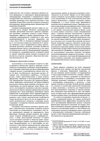 Ключевые фразы: ЭКОНОМИЧЕСКИЕ ОТНОШЕНИЯ, доверие, экономическая социология, кризис доверия, глобализация