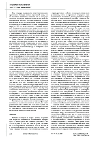 4. Зубок Ю.А., Чупров В.И. Жизненные стратегии молодежи: реализация ожиданий и социальные настроения // Мониторинг общественного мнения: экономические и социальные перемены. 2020. № 3. С. 13-41. DOI: 10.14515/monitoring.2020.3.1602 EDN: GTXODD