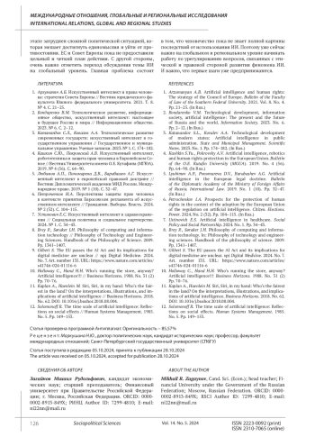 3. Катанандов С.Л., Ковалев А.А. Технологическое развитие современных государств: искусственный интеллект в государственном управлении // Государственное и муниципальное управление. Ученые записки. 2023. № 1. С. 174-182. EDN: NASTDX