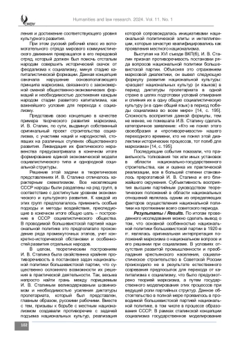 Результаты. По итогам проведенного исследования был сделан вывод о том, что основной особенностью национальной политики большевистской партии являлась оригинальная интерпретация положений марксизма о национальном вопросе и его решении при социализме. В рамках сталинской концепции социализма происходило государственное моделирование советского общества, что предполагало выравнивание уровней экономического и культурного развития, населяющих СССР народов.
