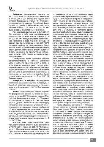 3. Пояснительная записка к проекту федерального закона «О внесении изменения в статью 207 Уголовного кодекса Российской Федерации и статью 151 Уголовно-процессуального кодекса Российской Федерации» // СПС «КонсультантПлюс» (дата обращения: 21.09.2024).