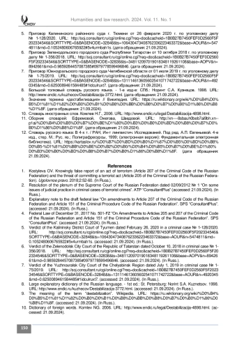 6. Приговор Зеленодольского городского суда Республики Татарстан от 10 октября 2018 г. по уголовному делу № 1-356/2018. URL: http://soj.consultant.ru/cgi/online.cgi?req=doc&cacheid=1B0B27B7450FEF0D2560F5F202334546&SORTTYPE=0&BASENODE=32838&ts=348112097019018348119261108&base=AOPV&n=8942661&rnd=0.9859284457087385#0979778599496846. (дата обращения: 21.09.2024).