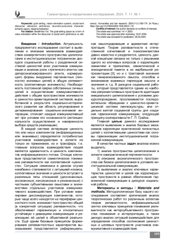 Статья: Пространство целеполагания как форма учета ценностных ориентаций в дискурсе социальной работы (пертинентность vs релевантность) (2024)
