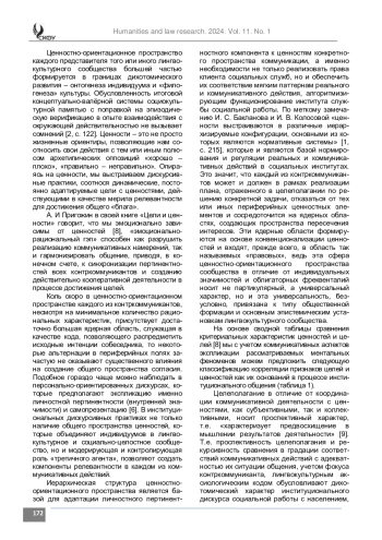 Введение. Современные коммуникативно-прагматические исследования ставят во главу угла значимостные характеристики интеракции, т. е. необходимость экспликации/импликации ценностей и целей как дискретных участников взаимодействия, так и общего пространства целеполагания и когнитивных активов контркоммуникантов, что детерминирует адекватность и ценность компонентов информационного потока. Цель нашего исследования – анализ базовых характеристик коррелятов в ценностно-ориентационном и целевом пространстве социально-значимой коммуникации.