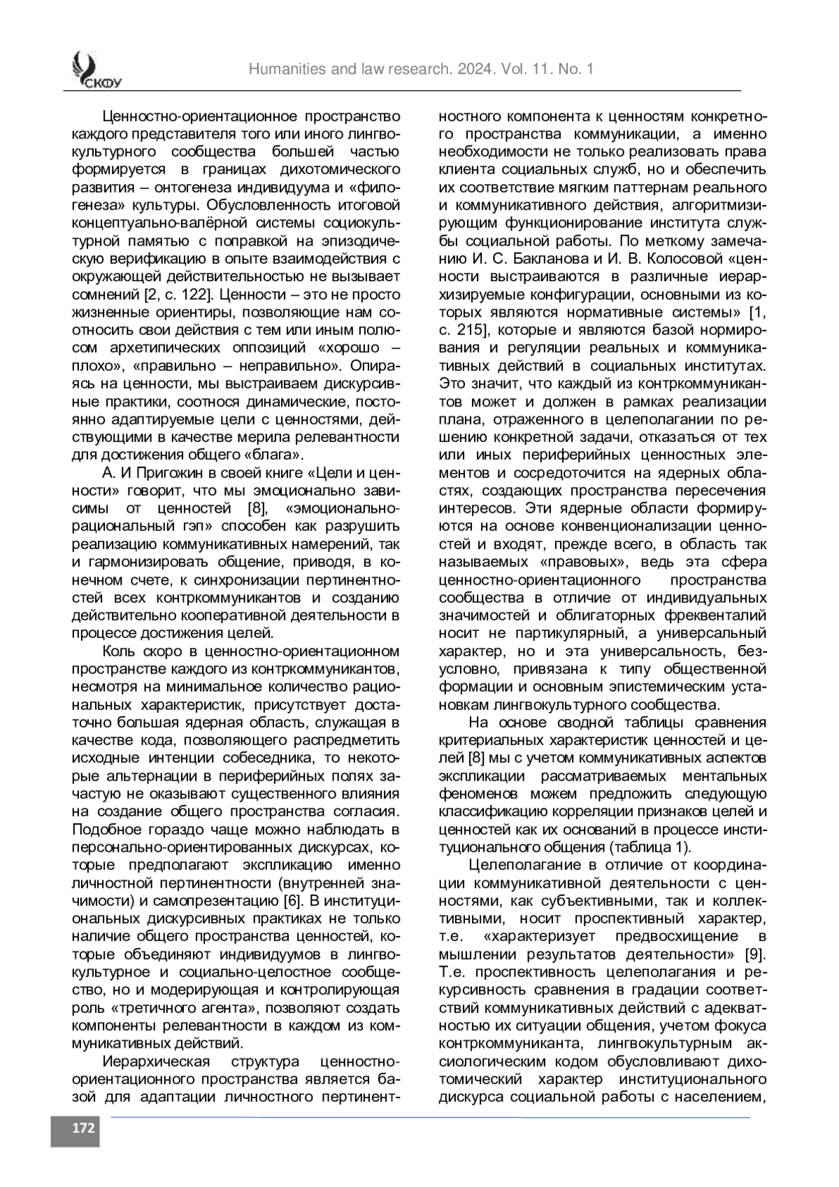 БРЕДИХИНА Ю. И. ПРОСТРАНСТВО ЦЕЛЕПОЛАГАНИЯ КАК ФОРМА УЧЕТА ЦЕННОСТНЫХ ОРИЕНТАЦИЙ В ДИСКУРСЕ СОЦИАЛЬНОЙ РАБОТЫ (ПЕРТИНЕНТНОСТЬ VS РЕЛЕВАНТНОСТЬ) // ГУМАНИТАРНЫЕ И ЮРИДИЧЕСКИЕ ИССЛЕДОВАНИЯ. 2024. ТОМ 11, № 1
