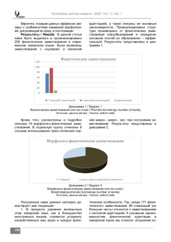 Анализ. Анализируя фонетический аспект адаптации, мы разделили выявленные нами заимствования на 2 группы: фонетическая и морфолого-фонетическая. При этом, к первому типу мы отнесли перенесенные из иностранного языка слова в исходной форме с незначительной адаптацией к кхмерской фонетике, а ко второй – слова, подвергшиеся процессу, при котором к фонетическому заимствованию добавляется кхмерская морфема. В рамках каждой из группы нами были выделены более мелкие подгруппы. В частности, фонетические заимствования были поделены на заимствования с «нулевой» и неполной адаптацией, а также отдельно описали производящие фонетические заимствования. Морфолого-фонетические заимствования в исследовании также представлены двумя подгруппами: фонетическое заимствование + кхмерская морфема и греко-латинские элементы в сочетании с кхмерским (палийским/санскритским) словом.