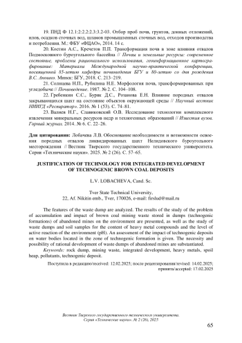 ЛОБАЧЕВА Л. В. ОБОСНОВАНИЕ НЕОБХОДИМОСТИ И ВОЗМОЖНОСТИ ОСВОЕНИЯ ПОРОДНЫХ ОТВАЛОВ ЛИКВИДИРОВАННЫХ ШАХТ НЕЛИДОВСКОГО БУРОУГОЛЬНОГО МЕСТОРОЖДЕНИЯ // ВЕСТНИК ТВЕРСКОГО ГОСУДАРСТВЕННОГО ТЕХНИЧЕСКОГО УНИВЕРСИТЕТА. СЕРИЯ: ТЕХНИЧЕСКИЕ НАУКИ. 2025. № 2 (26)