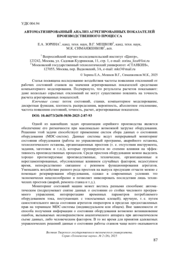 Статья посвящена исследованию воздействия частоты появления отклонений от рабочих состояний станков на значения агрегированных показателей средствами компьютерного моделирования. Подчеркнуто, что результаты расчетов показывают: даже несколько серьезных отклонений не могут существенно повлиять на точность расчета агрегированных показателей