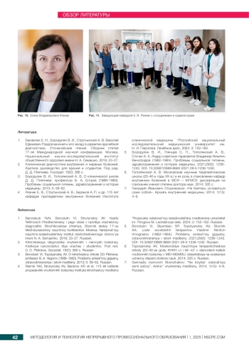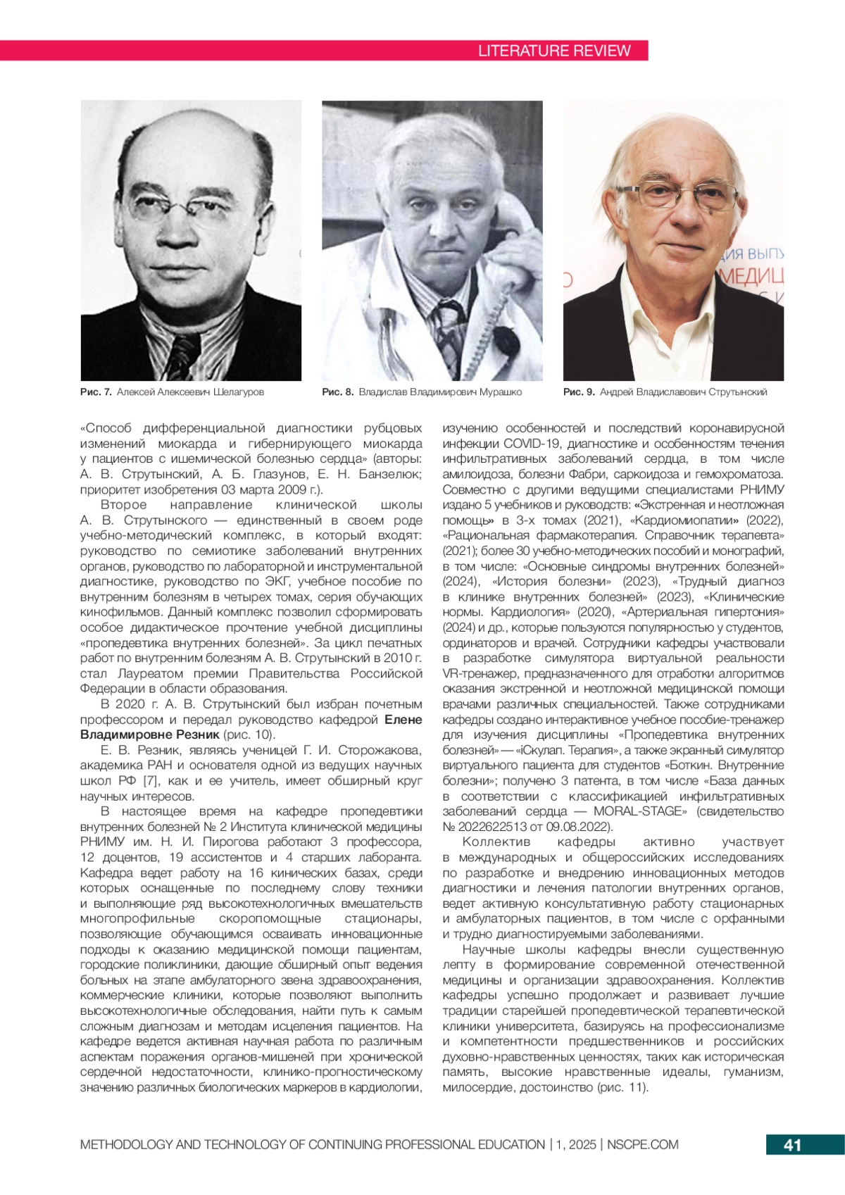 4. Резник Е. В., Струтынский А. В., Баранов А. П. и др. 115 лет кафедре пропедевтики внутренних болезней Института клинической медицины “Российский национальный исследовательский медицинский университет им. Н. И. Пирогова. Лечебное дело. 2024; 2: 152-162.