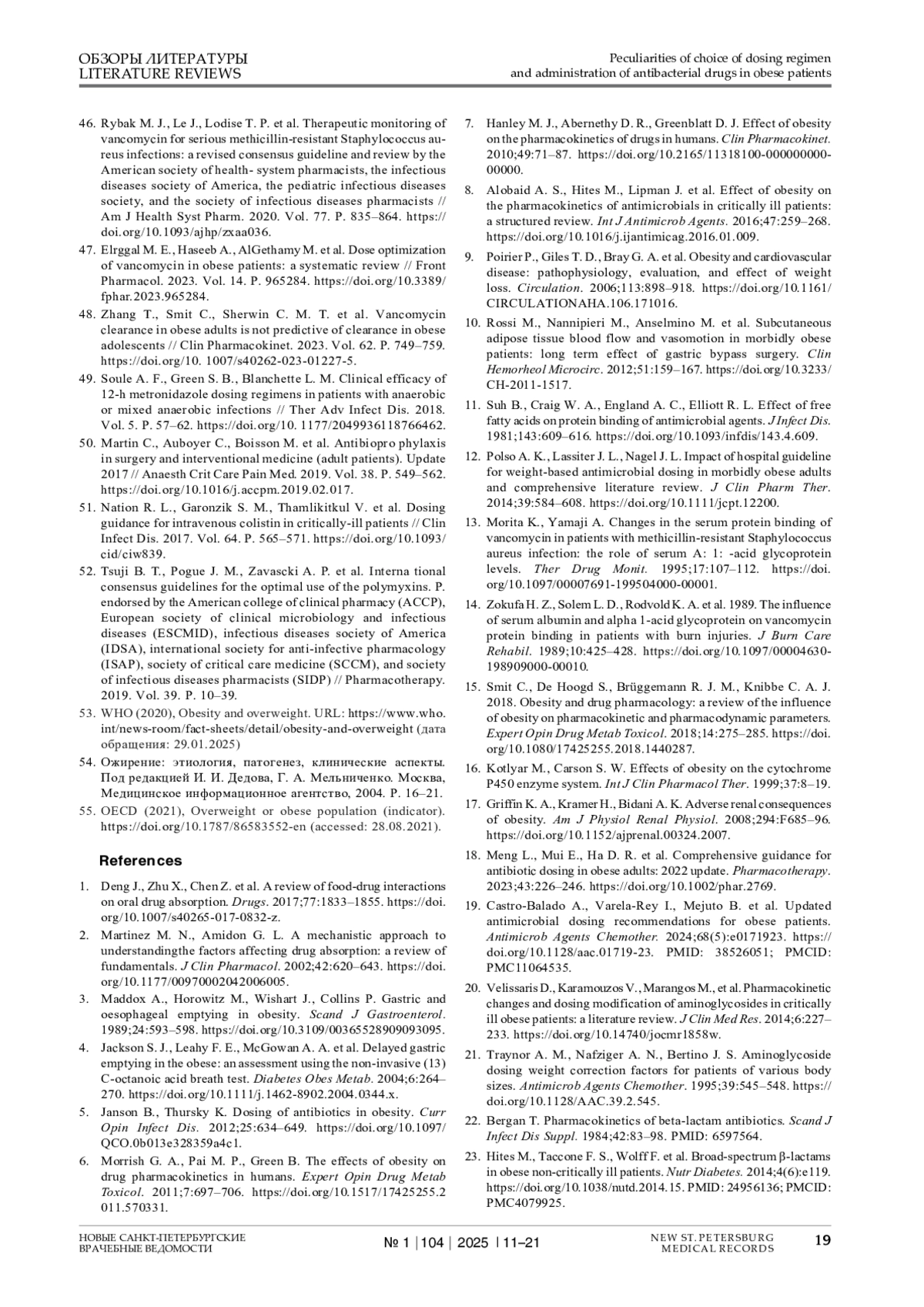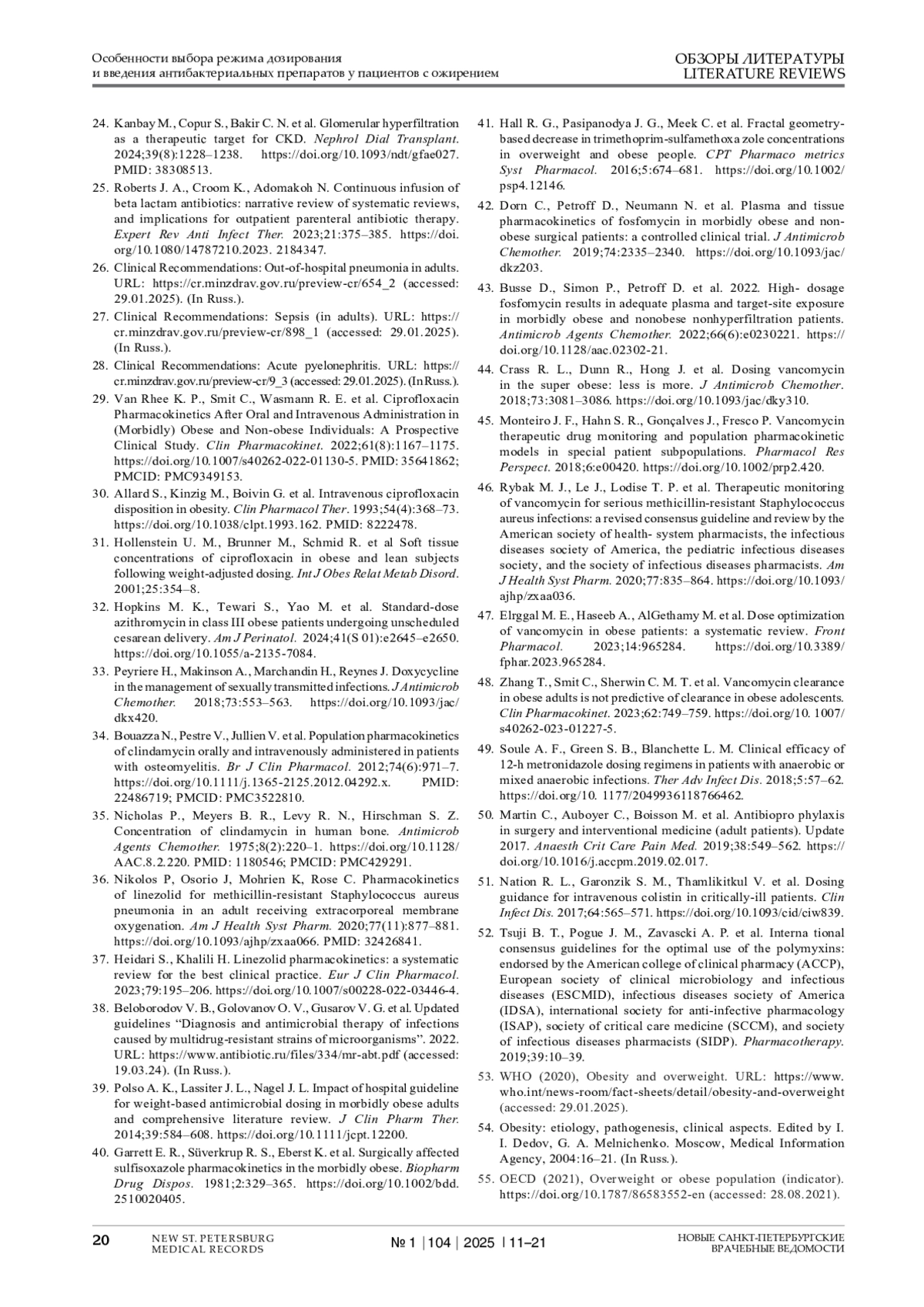 47. Elrggal M. E., Haseeb A., AlGethamy M. et al. Dose optimization of vancomycin in obese patients: a systematic review // Front Pharmacol. 2023. Vol. 14. P. 965284. DOI: 10.3389/fphar.2023.965284