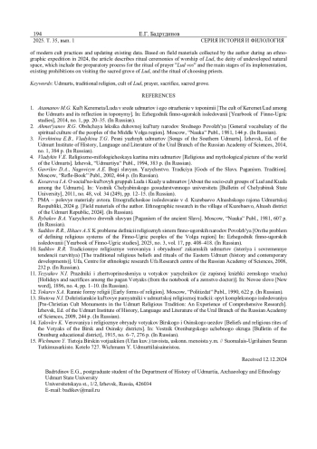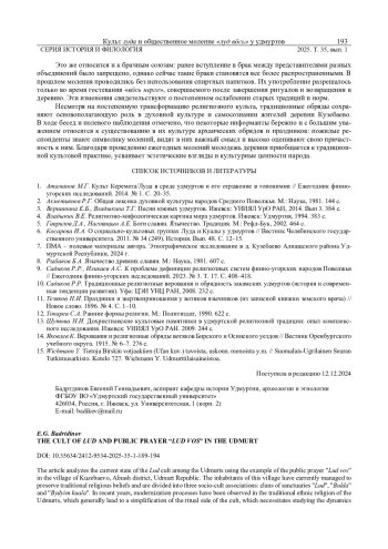 БАДРТДИНОВ Е. Г. КУЛЬТ ЛУДА И ОБЩЕСТВЕННОЕ МОЛЕНИЕ «ЛУД ВӦСЬ» У УДМУРТОВ // ВЕСТНИК УДМУРТСКОГО УНИВЕРСИТЕТА. СЕРИЯ: ИСТОРИЯ И ФИЛОЛОГИЯ. 2025. Т. 35 № 1