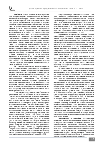 Введение. Актуальность рассматриваемой в статье проблемы связана с уточнением степени влияния идей и практик Фридриха II Великого на Павла I в государственной политике, в частности в проведении ряда реформ. Такое исследование способствует переосмыслению истории российского самодержавия не только в XVIII веке, но и в общей истории России.