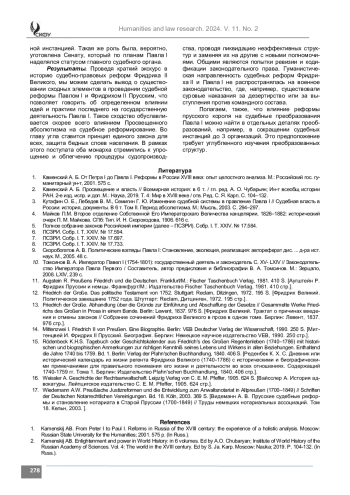 Результаты. По итогам проведенного исследования можно сделать вывод о том, что судебноправовые реформы обуславливались влиянием Просвещенного абсолютизма и были направлены на преодоление судебного произвола и реализацию гуманистических идей.