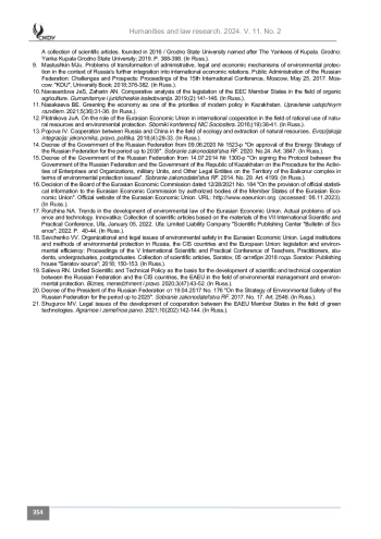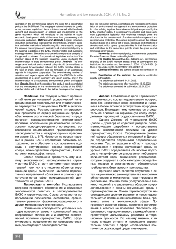 Ключевые фразы: ЭКОЛОГИЧЕСКАЯ ПОЛИТИКА, охрана окружающей среды, ЕВРАЗИЙСКИЙ ЭКОНОМИЧЕСКИЙ СОЮЗ, НАЦИОНАЛЬНОЕ ЗАКОНОДАТЕЛЬСТВО