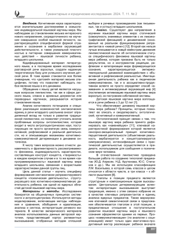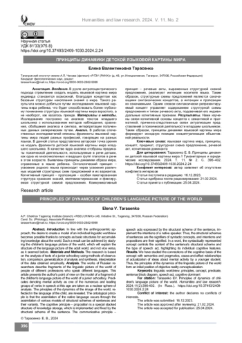 ТАРАСЕНКО Е. В. ПРИНЦИПЫ ДИНАМИКИ ДЕТСКОЙ ЯЗЫКОВОЙ КАРТИНЫ МИРА // ГУМАНИТАРНЫЕ И ЮРИДИЧЕСКИЕ ИССЛЕДОВАНИЯ. 2024. ТОМ 11, № 2