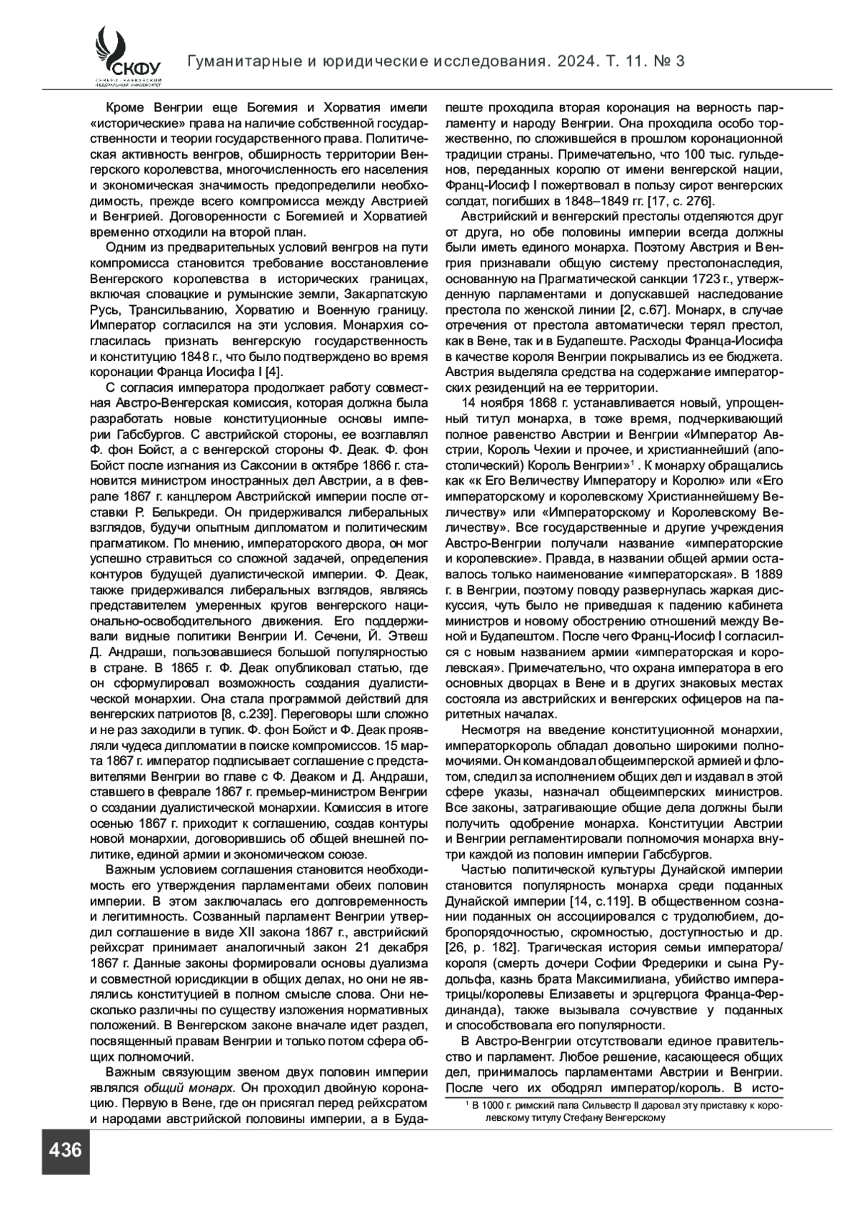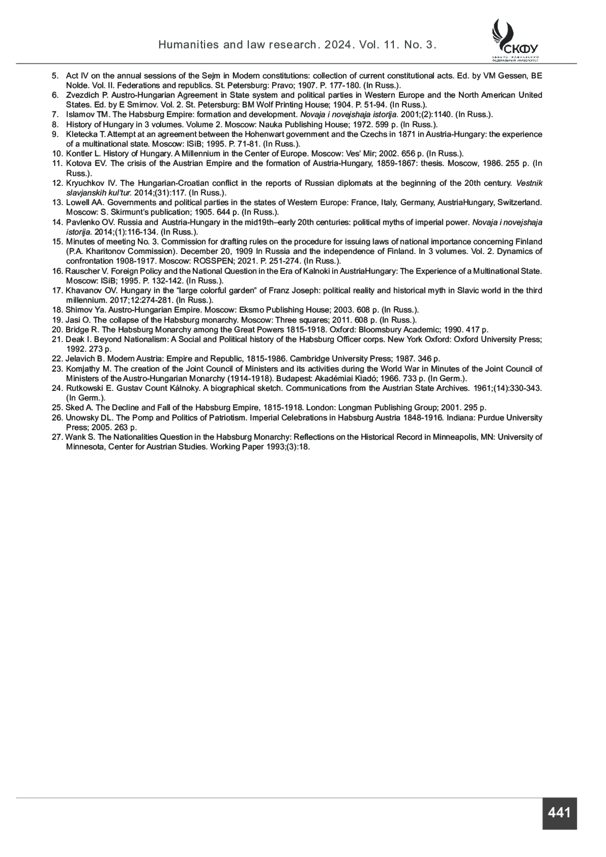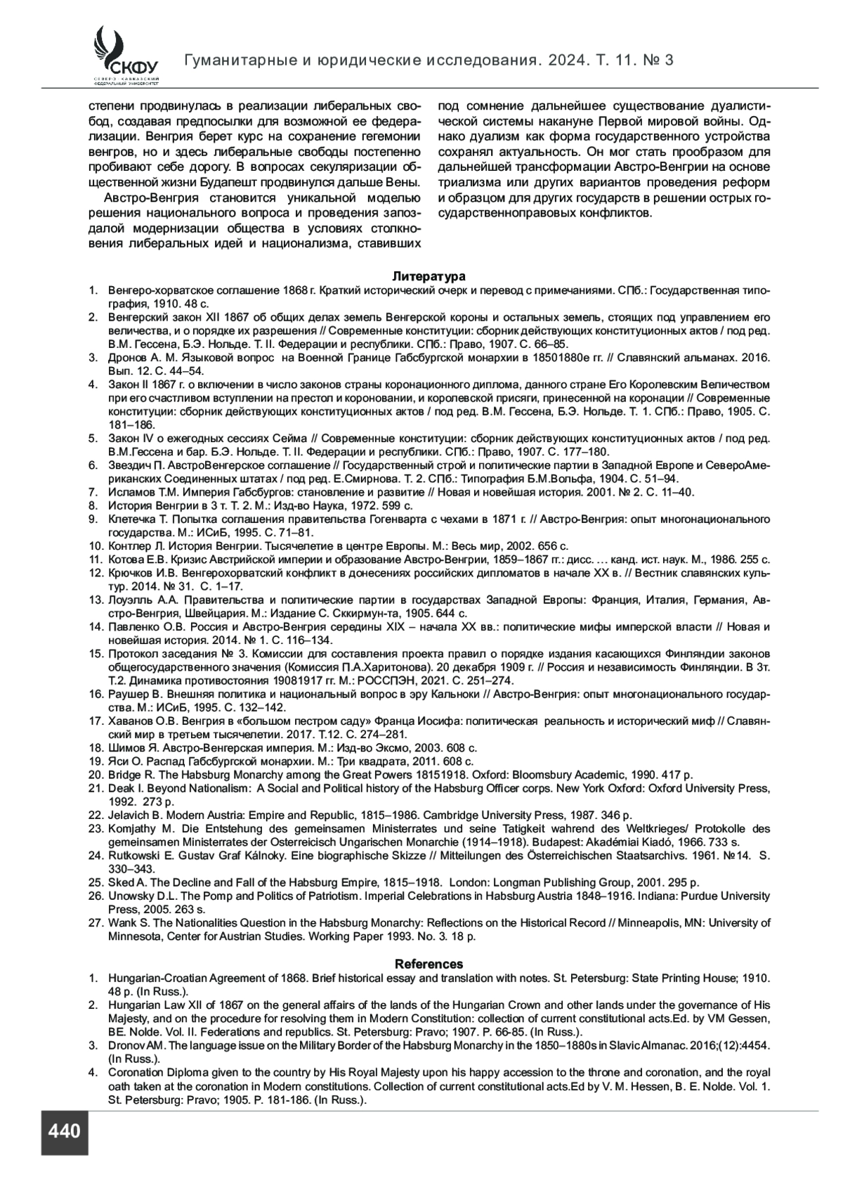 17. Хаванов О.В. Венгрия в «большом пестром саду» Франца Иосифа: политическая реальность и исторический миф // Славянский мир в третьем тысячелетии. 2017. Т.12. С. 274-281.