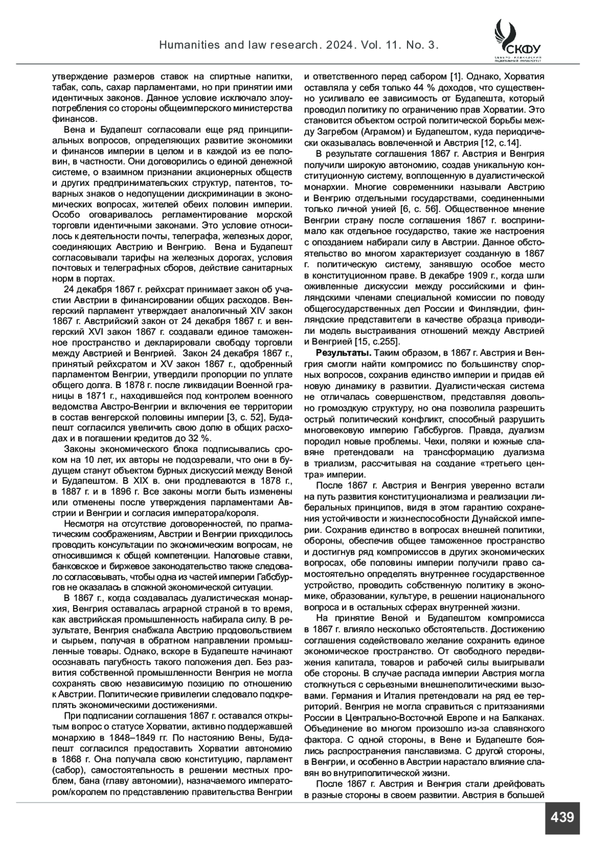 Введение. Австро-Венгрия после реформирования в 1867 г. становится уникальным государственным образованием, предполагающим отказ от жесткой централизации и реализовавшем на практике уникальную формулу конституционного развития, личную унию Австрии и Венгрии, выбравших различные модели внутриполитического и экономического развития. Создание Европейского союза, развитие поликультурности, нарастание роли регионов в развитии отдельных государств и ЕС в целом, стимулируют интерес к изучению истории империи Габсбургов.