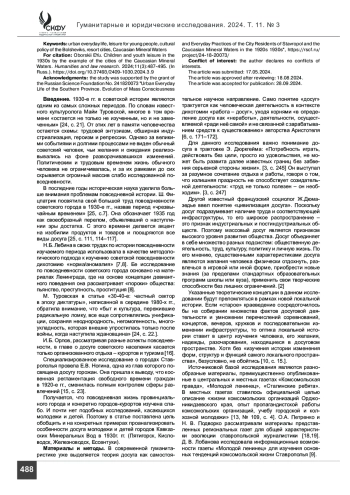 Статья: Детско-юношеский досуг в 1930-е гг. на примере городов Кавказских Минеральных Вод (2024)
