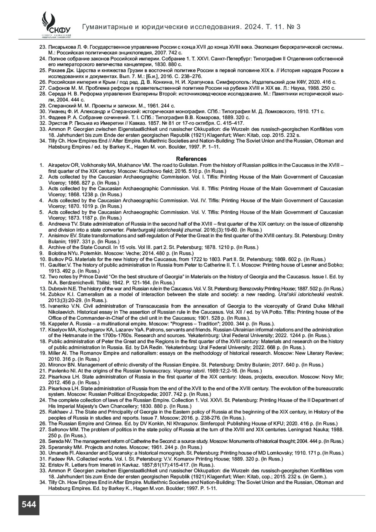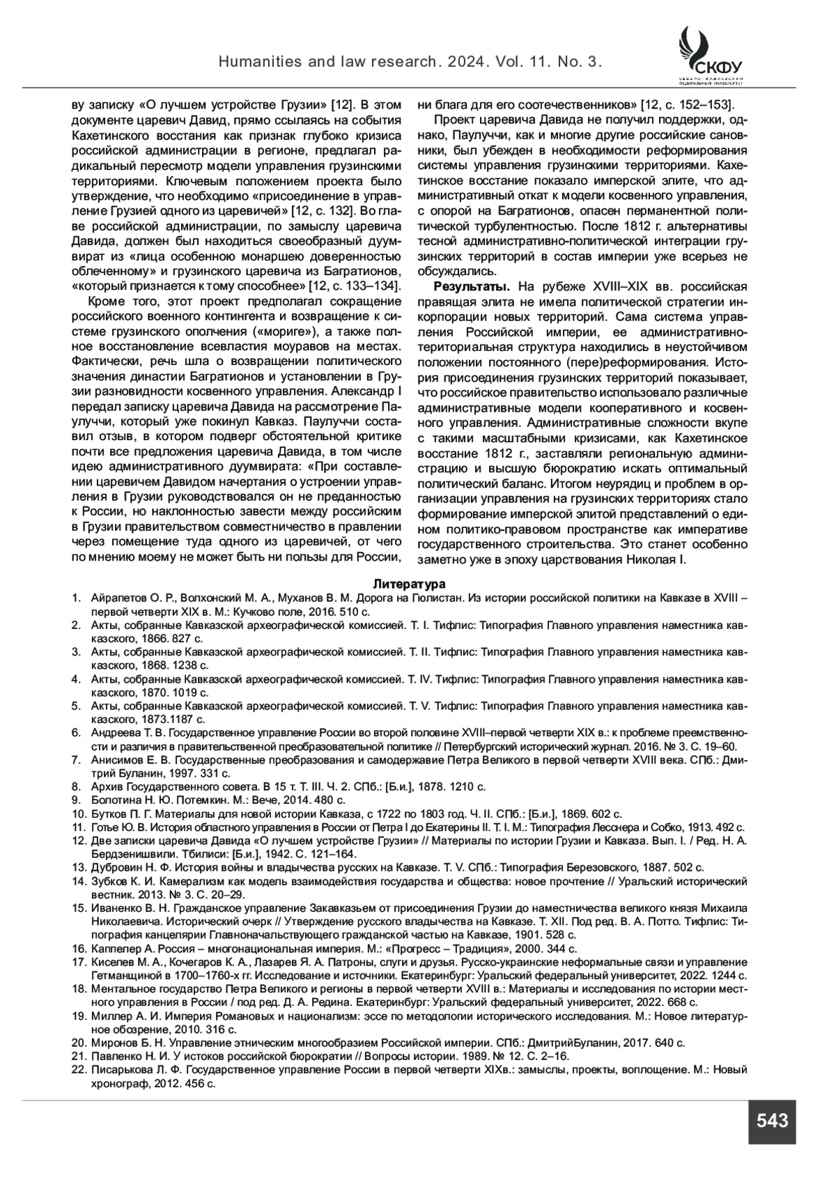 25. Рахаев Дж. Царства и княжества Грузии в восточной политике России в первой половине XIX в. // История народов России в исследованиях и документах. Вып. 7. М.: [Б.и.], 2016. С. 238-276.