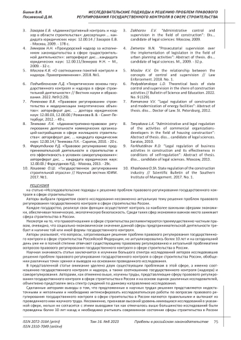 Farkhutdinov R.D. “Legal regulation of business activities in construction and its effectiveness in conditions of self-regulation”: Abstract of thesis. diss… candidate of legal sciences. Moscow, 2013. EDN: SUUJHZ