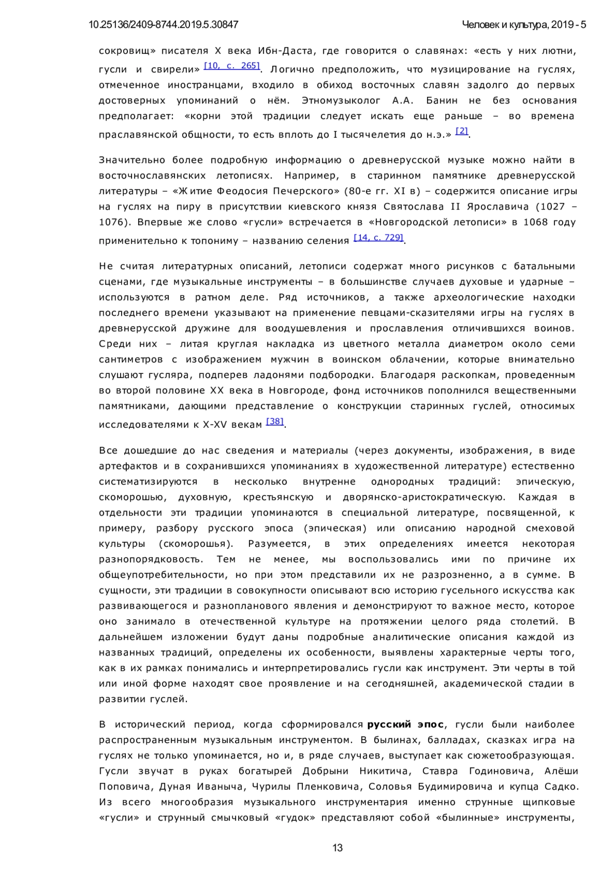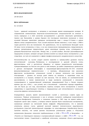 Волков Д.В. — Ранние традиции игры на гуслях и современный статус инструмента. // Человек и культура. 2019. – No 5. – С. 11 - 26. DOI: 10.25136/2409-8744.2019.5.30847 URL: https://nbpublish.com/library_read_article.php? id=30847