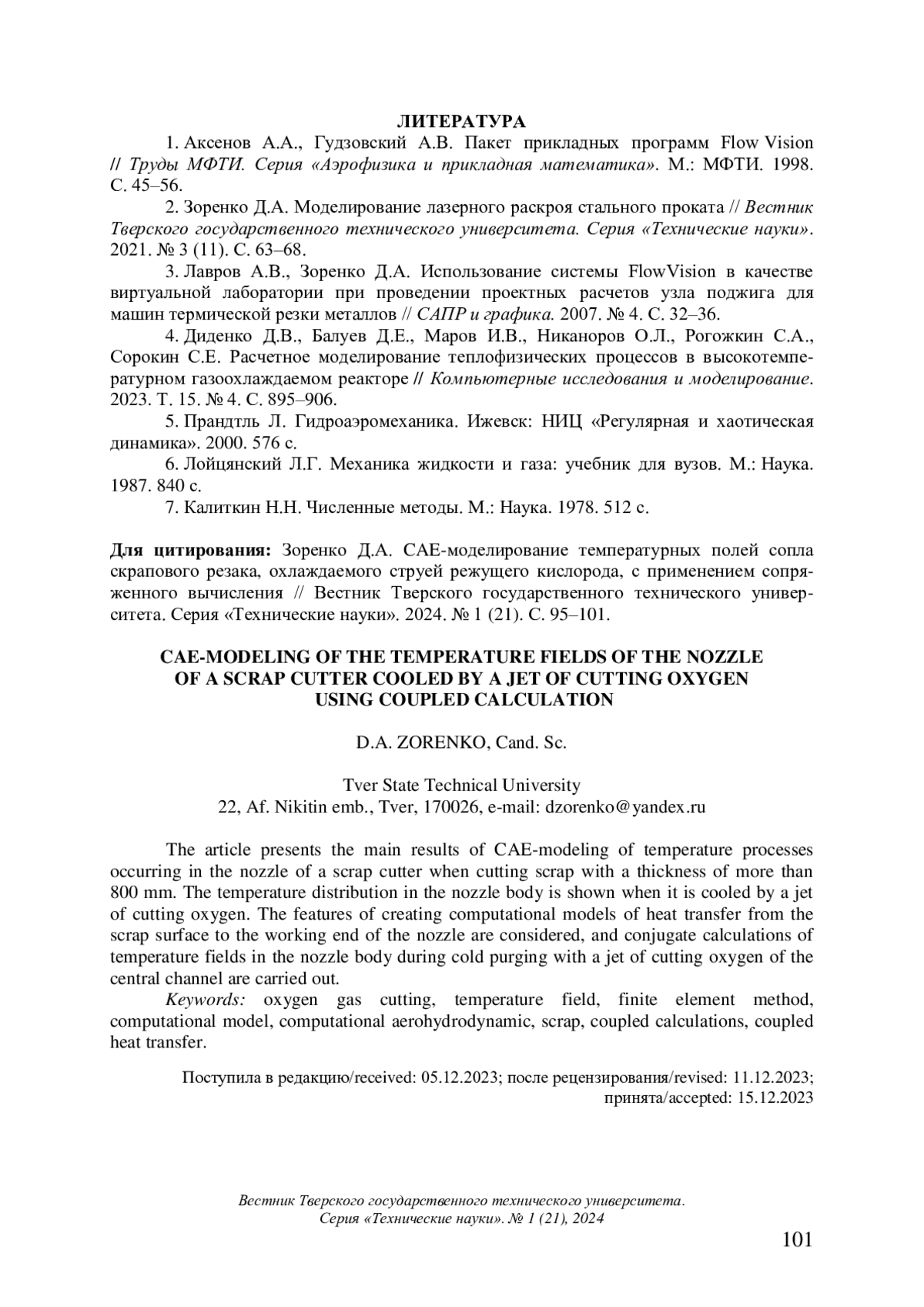 2. Зоренко Д.А. Моделирование лазерного раскроя стального проката // Вестник Тверского государственного технического университета. Серия “Технические науки”. 2021. № 3 (11). С. 63-68. EDN: UEWMGN
