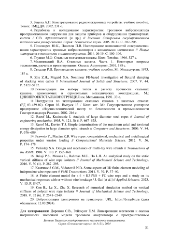 15. Velinsky S.A. Design and mechanics of multi-lay wire strands // Transactions of the ASME. 1988. V. 110. P. 152-160.