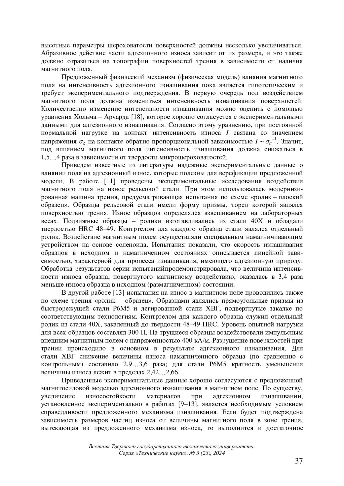 11. Борисова Е.А., Диков А.Г., Зелинский В.В. Оценка влияния магнитного воздействия на триботехнические свойства стали // Успехи современного естествознания. 2012. № 6. С. 73. EDN: PBJSSD