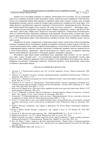 АБУКАЕВА Л. А. РЕПРЕЗЕНТАЦИЯ РИТУАЛЬНЫХ ВОЗЛИЯНИЙ В ТЕКСТАХ МАРИЙСКИХ МОЛИТВ // ВЕСТНИК УДМУРТСКОГО УНИВЕРСИТЕТА. СЕРИЯ: ИСТОРИЯ И ФИЛОЛОГИЯ. 2025. Т. 35 № 2
