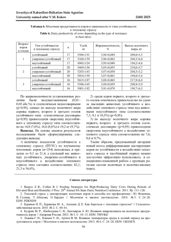 7. Тимошенко В. Н., Музыка А. А., Москалев А. А. Тепловой стресс у коров. Как сохранить продуктивность? // Белорусское сельское хозяйство. 2016. № 7. С. 42-47.