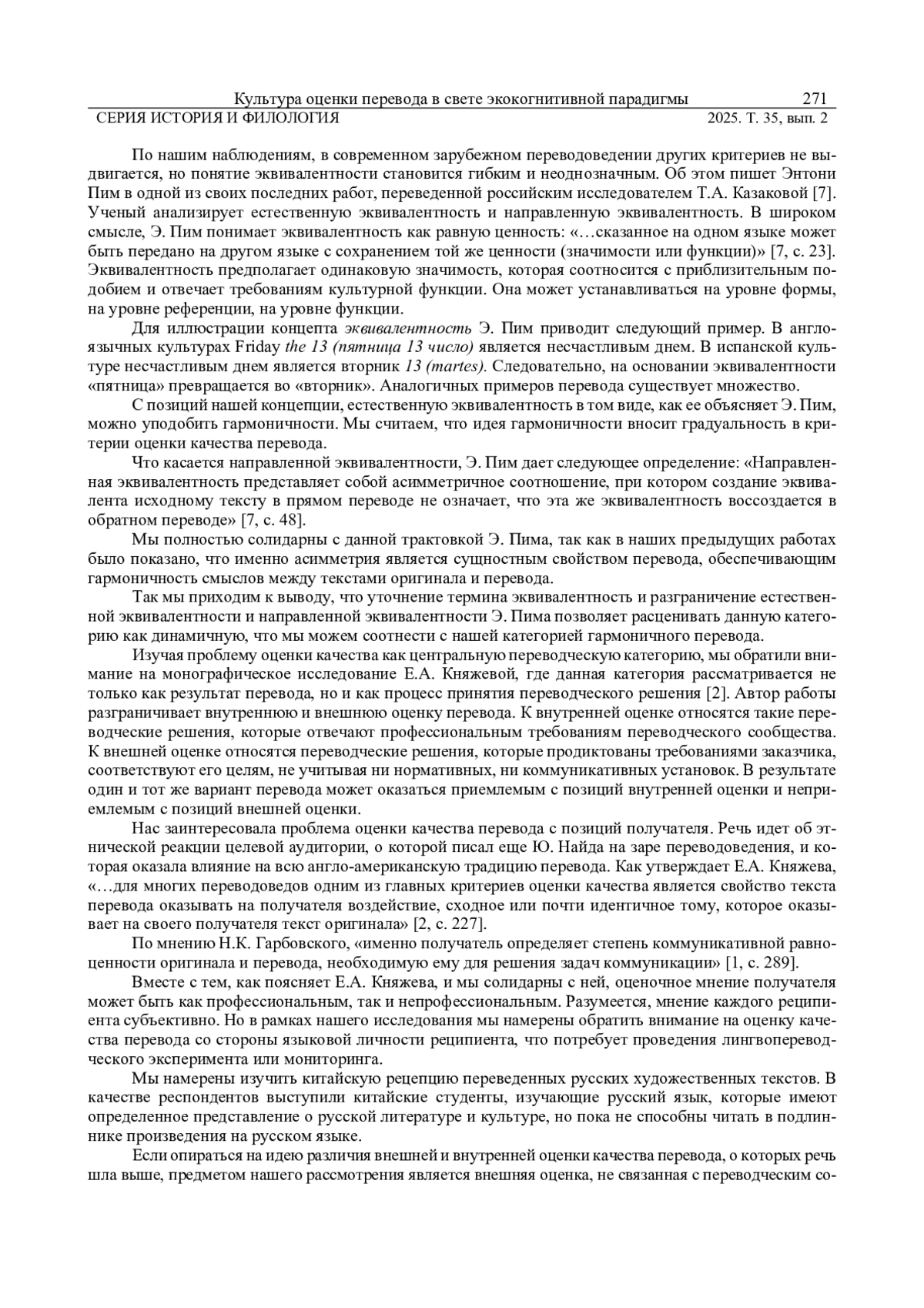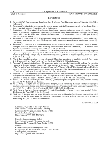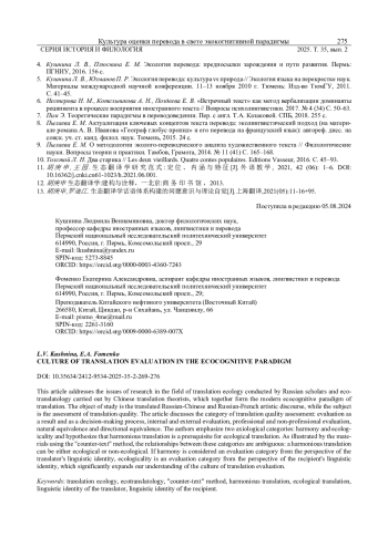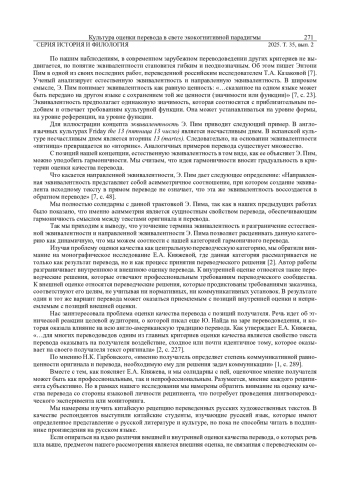 КУШНИНА Л. В., ФОМЕНКО Е. А. КУЛЬТУРА ОЦЕНКИ ПЕРЕВОДА В СВЕТЕ ЭКОКОГНИТИВНОЙ ПАРАДИГМЫ // ВЕСТНИК УДМУРТСКОГО УНИВЕРСИТЕТА. СЕРИЯ: ИСТОРИЯ И ФИЛОЛОГИЯ. 2025. Т. 35 № 2