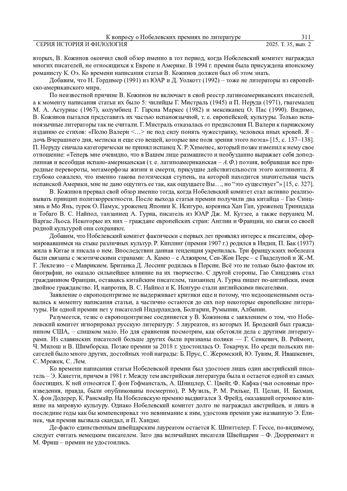 2. Архипов Ю. Нобелевский дефолт // Литературная газета. 2004. № 41. С. 1.