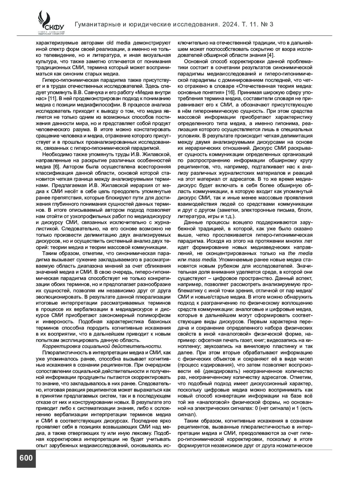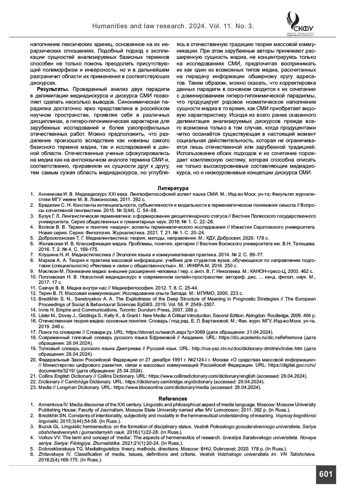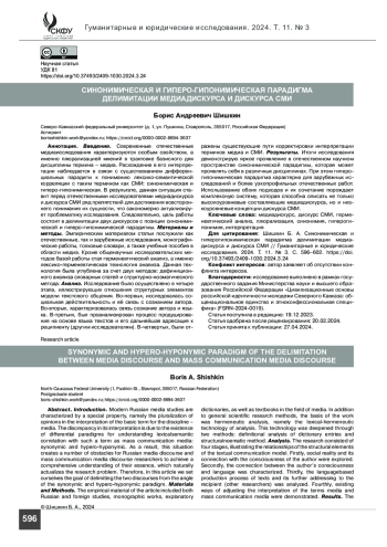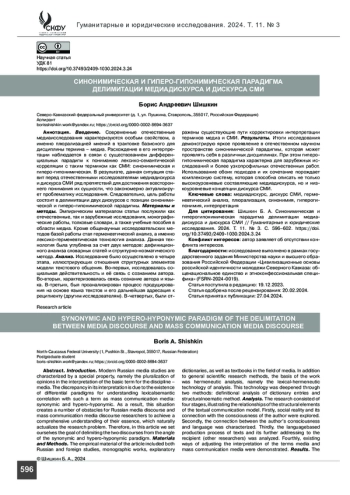Статья: Синонимическая и гиперогипонимическая парадигма делимитации медиадискурса и дискурса СМИ (2024)