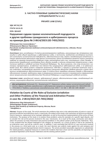 4. Домшенко В.Г. Компетенция и подсудность групповых исков в арбитражном и гражданском процессе: дискуссионные вопросы // Вестник гражданского процесса. 2022. № 5. С. 228 - 245. EDN: FRRDSU