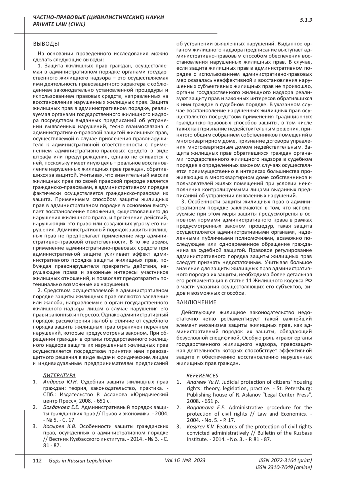 3. Косырев К.В. Особенности защиты гражданских прав, осужденных в административном порядке // Вестник Кузбасского института. - 2014. - № 3. - С. 81 - 87. EDN: SNQYYJ
