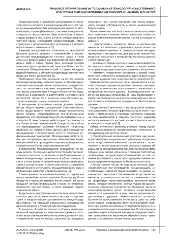 6. Келепова М.Е., Молодчик А.В., Нагорная М.С. Правовое и институциональное регулирование искусственного интеллекта на международном и национальном уровнях / Управление в современных системах // ВАК. - 2022. - C. 68-77.