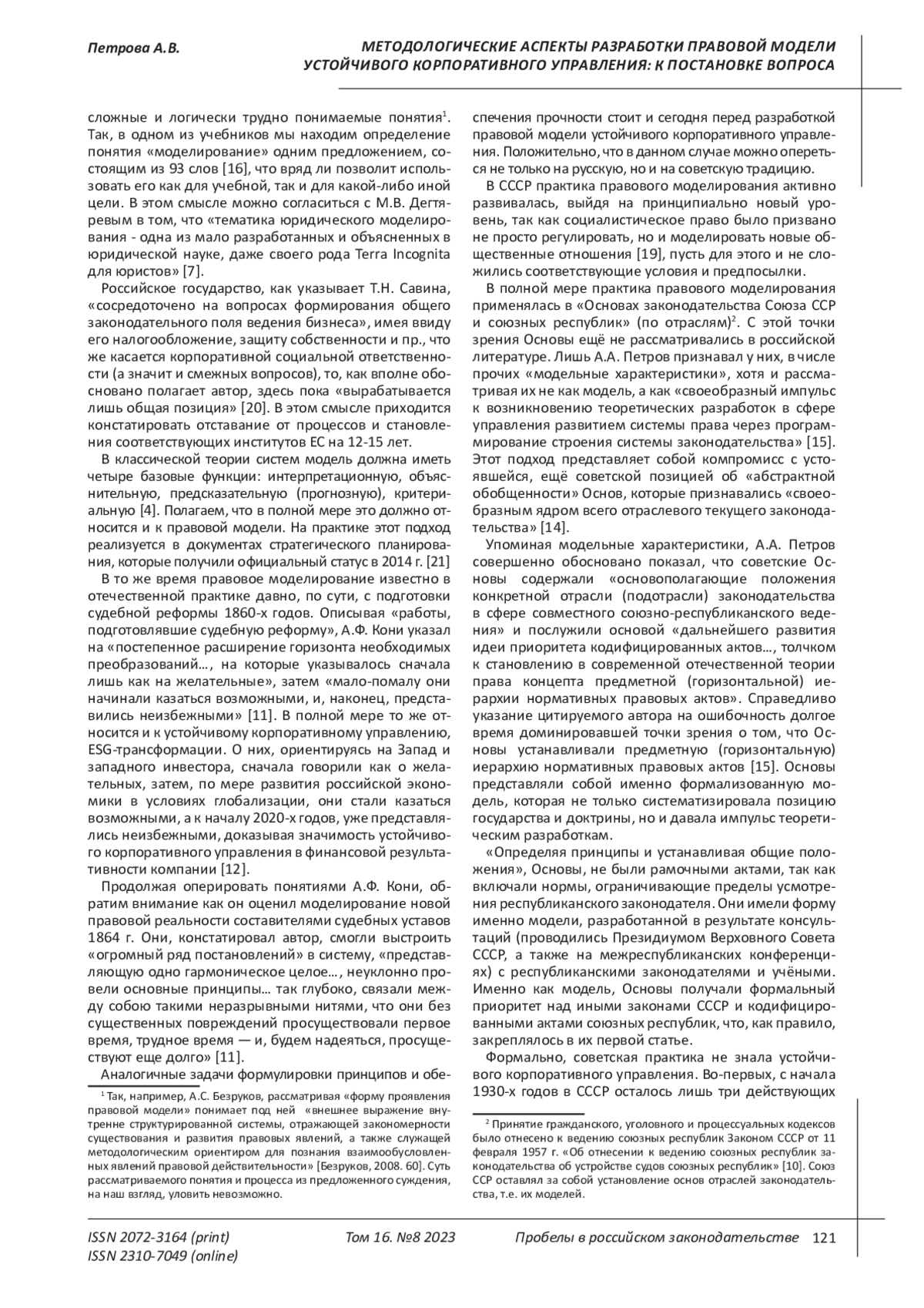 15. Петров А.А. Основы законодательства СССР и союзных республик в контексте развития идеи формального приоритета кодифицированных актов// Ленинградский юридический журнал. 2016. №2 (44). С. 19-27. EDN: PTQYJB