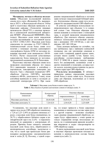 2. Влияние микроволновой обработки на структуру и микробную обсеменённость нута / В. Н. Храмова, Д. И. Сурков, И. В. Владимцева, А. И. Богданов // Пищевая промышленность. 2023. № 11. C. 76-79. DOI: 10.52653/PPI.2023.11.11.016 EDN: NVRGBW