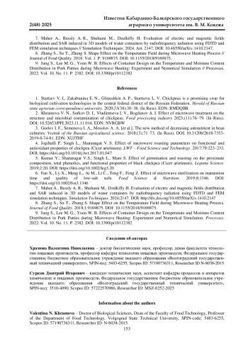 8. Zhang S., Su T., Zhang S. Shape Effect on the Temperature Field during Microwave Heating Process // Journal of Food Quality. 2018. Vol. 1. P. 9169875. DOI: 10.1155/2018/9169875