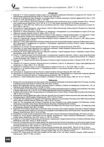 15. Серова И. Ю. К вопросу о влиянии «Летописной книги» на Повести о Смуте С. И. Шаховского // Труды отдела Древнерусской литературы. Л.: Наука, 1990. Т. 43. С. 338-346.