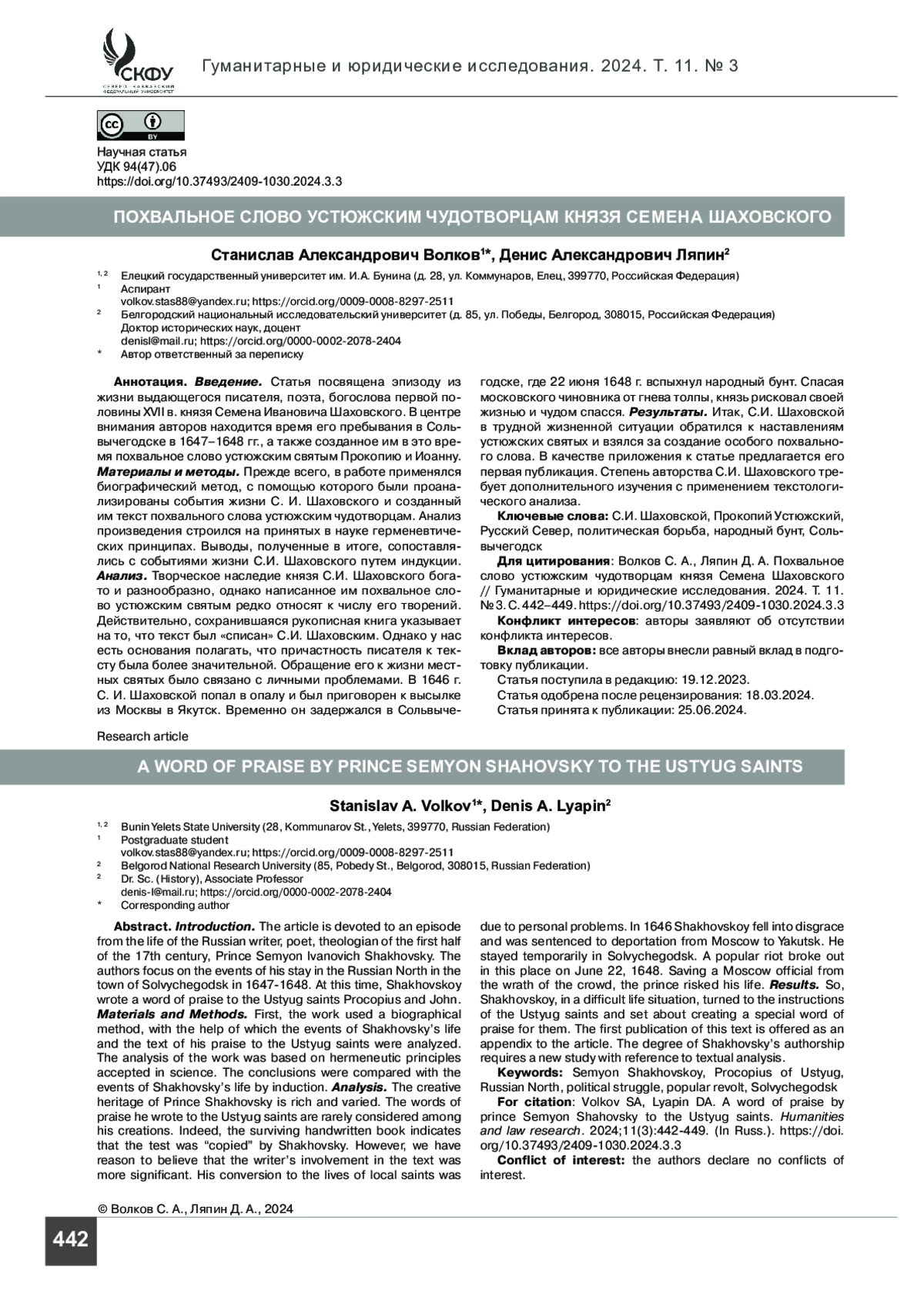 7. Ляпин Д.А. Непризнанный святой Прокопий Устьянский и новые сведения к творческой биографии С. И. Шаховского // Известия Саратовского университета. Серия История. Международные отношения. 2022. Т. 22. Вып. 4. С. 430-435.